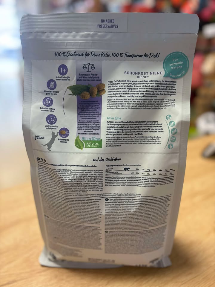 Happy Cat Care Protection Rénale est particulièrement indiqué pour l’alimentation des chats se trouvant aux premiers stades d'une insuffisance rénale. Veuillez noter qu'un tel diagnostic doit impérativement être vérifié et confirmé par un vétérinaire.
