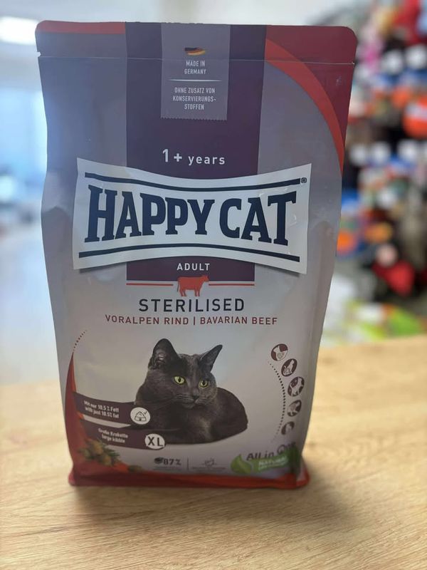 Avec seulement 10,5 % de matières grasses et des fibres alimentaires rassasiantes, Happy Cat Sterilised Adulte Bœuf Préalpin assure une régulation optimale du poids. Les grandes croquettes favorisent l’hygiène et les soins dentaires