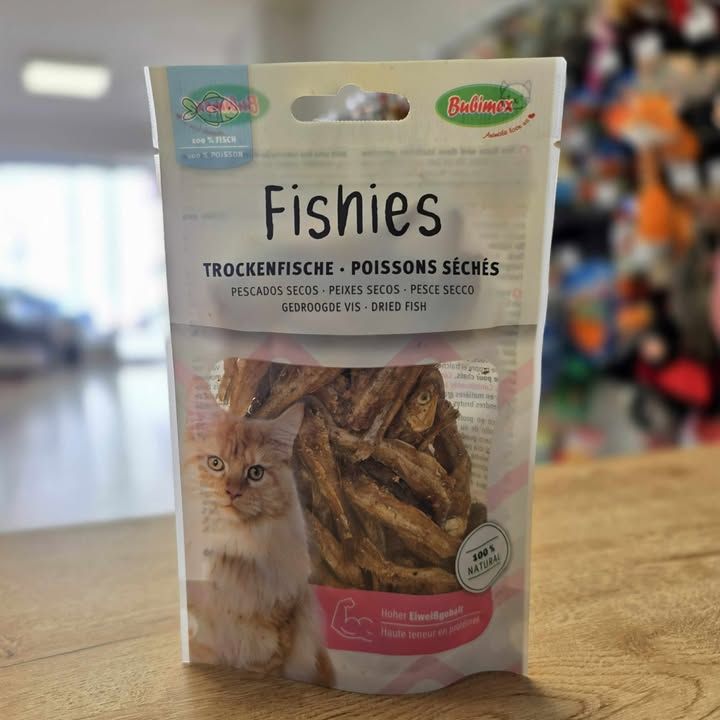 Offrez à votre chat une friandise saine et savoureuse avec FISHIES POISSONS SÉCHÉS. Ces délicieux poissons séchés, composés à 100% de poisson naturel, sont riches en protéines essentielles pour soutenir le développement musculaire et la vitalité de votre compagnon à quatre pattes.