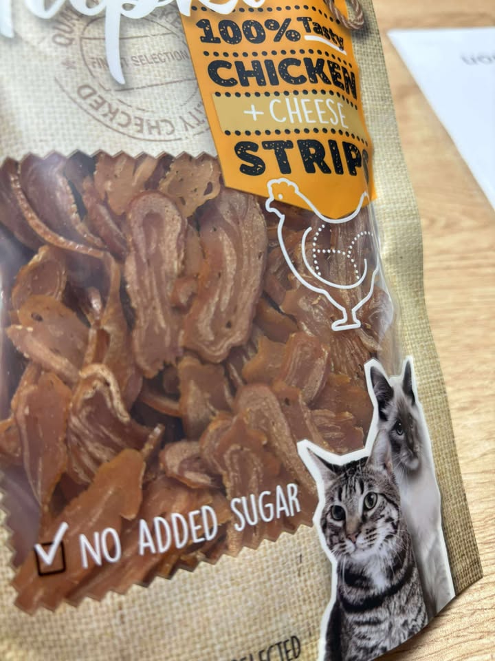 Faites plaisir à votre chat dès aujourd'hui avec les STRIPS POULET/FROMAGE – un en-cas qu'il adorera et que vous approuverez ! 🐾