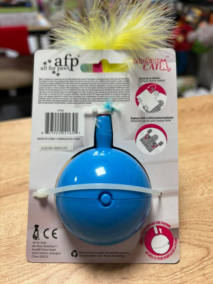 Appuyez simplement sur le bouton pour activer le mouvement de rotation et regardez les plumes et les rubans colorés danser, incitant votre chat à bondir et à jouer.