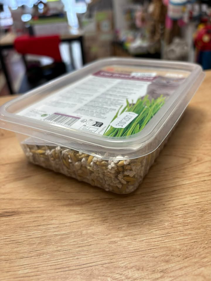 • Facile à cultiver : La barquette pratique permet de faire pousser l’herbe directement chez vous, sans effort.