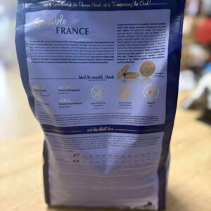 Composition : Protéines animales* (16% volaille, 4% agneau), maïs, farine de maïs, farine de riz, orge, lignocellulose, farine de poisson (5%, dont 50% farine de saumon), cretons, hydrolysat de foie, pulpe de betterave mélassée* (désucrée), graisse de volaille, moût de pomme*, chlorure de potassium, huile de tournesol, levure*, chlorure de sodium, algues marines*, graines de lin (0,15%), œuf en poudre (0,1%), huile de colza, chair de moule* (0,02%), levure* (extraite), chardon marié, artichaut, pissenlit, gingembre (0,013%), feuilles de bouleau, ortie, camomille, coriandre, romarin, sauge, racine de réglisse, thym, (total herbes séchées 0,15%).