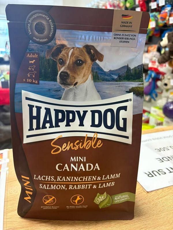 Happy Dog Sensible Mini Canada offre une composition exquise pour les petits chiens, à base de saumon raffiné, de délicieux lapin et d'agneau nourrissant, accompagnée de pommes de terre. Les pommes de terre sont sans gluten, et sont donc recommandées pour les animaux intolérants aux céréales. Ces savoureuses croquettes sans céréales sont idéales pour les chiens de petites races ayant des sensibilités nutritionnelles et/ou très actifs, grâce à une teneur énergétique plus élevée. En effet, la recette du Mini Canada convient parfaitement aux chiens sportifs qui ont besoin d’une alimentation riche en protéines pour les performances sportives. De plus, les petites croquettes sont parfaitement adaptées à la mâchoire des chiens de petites races.
