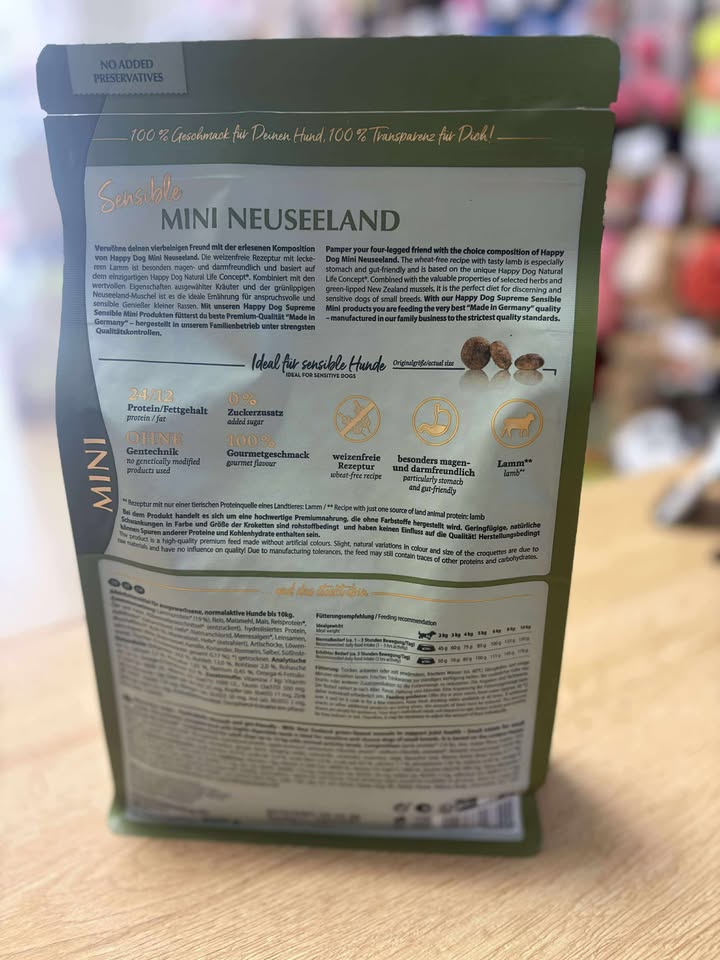 Le concept nutritionnel de Happy Dog combine de manière équilibrée des substances vitales et des ingrédients naturels dans la recette du Happy Dog Sensible Mini Neuseeland, ainsi que pour tous les autres aliments de la gamme Happy Dog Sensible. La recette est enrichie de précieuse moule verte de Nouvelle-Zélande pour soutenir les articulations de votre petit chien, et à la fois, les acides gras oméga-3 et oméga-6 sont bénéfiques pour un pelage sain. Notre délicieux aliment complet de qualité premium est idéal pour les chiens de petite taille jusqu'à 10 kg, même difficiles ou sensibles.