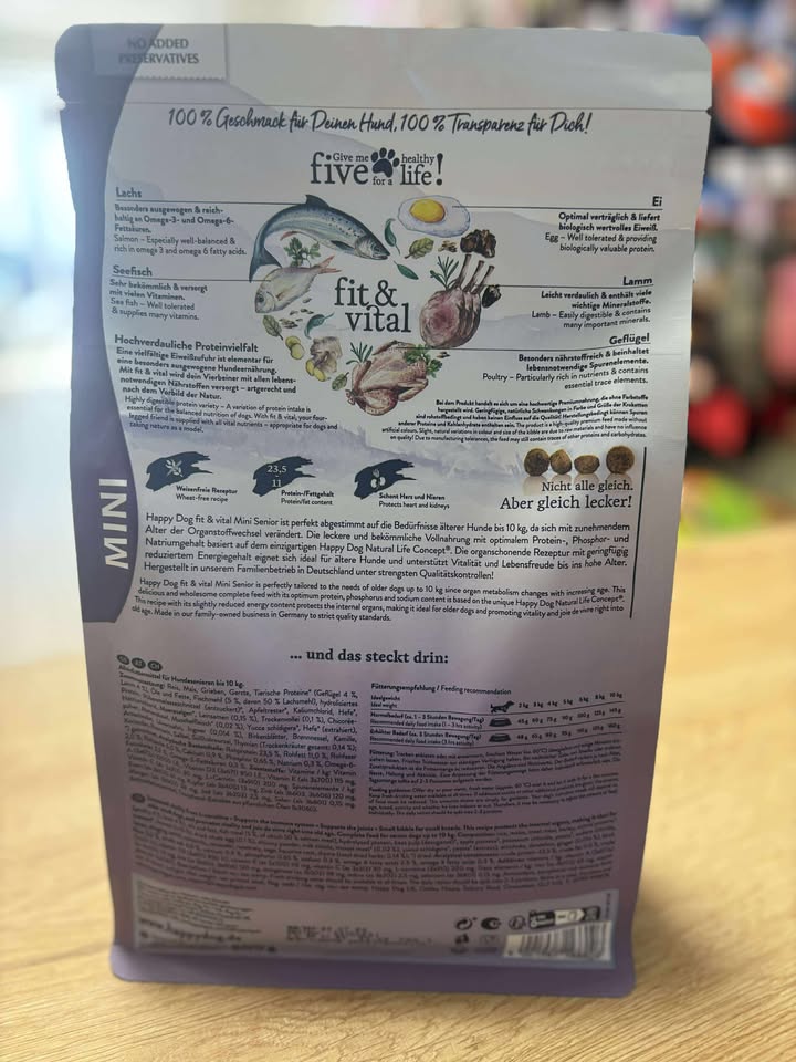 Complété par l'extraordinaire Happy Dog Natural Life Concept à base d'ingrédients naturels avec de l'artichaut et de la chicorée, ce mélange permet d'offrir une préparation extrêmement digeste et respectueuse des aliments, qui préserve longtemps le joie de vivre des chiens âgés actifs.