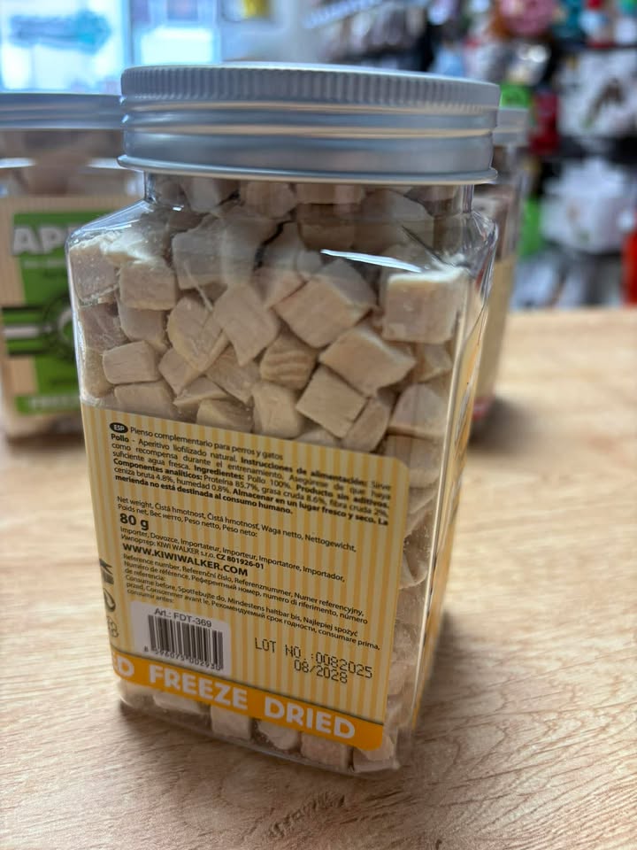 Offrez le summum de la récompense à votre animal avec la gamme Freeze Dried de Kiwi Walker. Contrairement aux friandises classiques, ces bouchées sont obtenues par lyophilisation, un procédé unique qui retire l'eau tout en préservant 100% des nutriments, des vitamines et du goût originel des aliments.