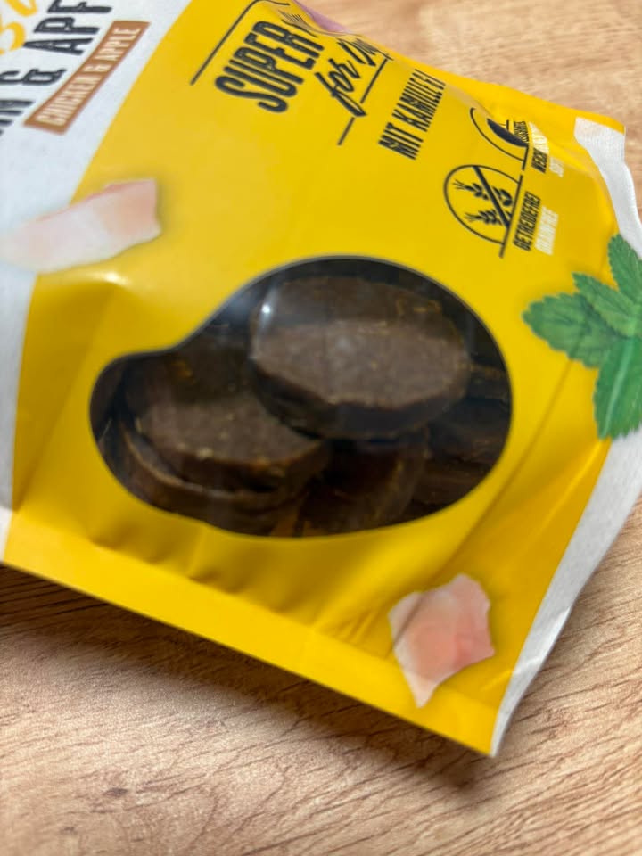 - Ingrédients naturels : Fabriqué avec du poulet de qualité et des pommes savoureuses, sans additifs artificiels.