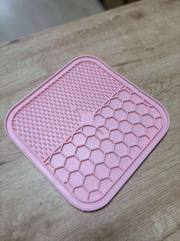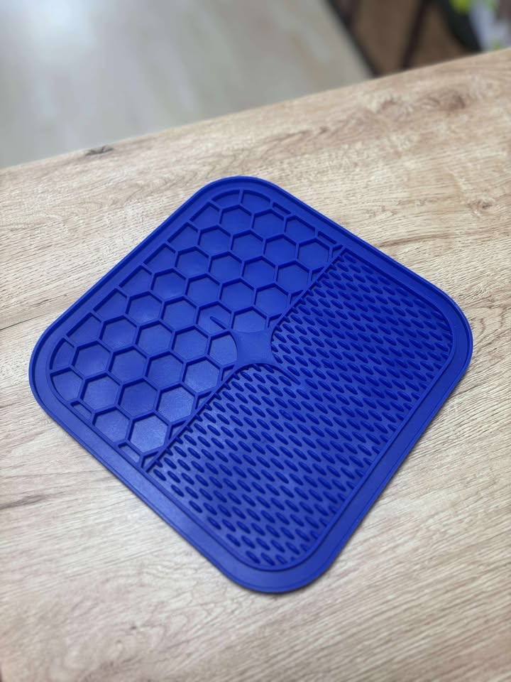 - Un tapis à lécher évite que l'animal n'engloutisse sa nourriture