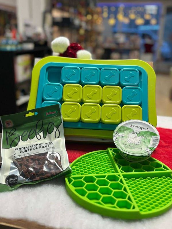 - Tapis de léchage : Idéal pour apaiser et stimuler votre chien, tout en ralentissant sa consommation de friandises ou de yaourt.