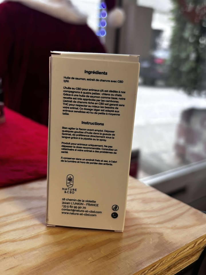 Offrez à votre compagnon à quatre pattes le meilleur avec CBD POUR ANIMAUX, une huile de saumon enrichie à 5% de CBD, spécialement conçue pour les chiens et les chats. Fabriquée en France, cette huile premium est idéale pour améliorer le bien-être général de vos animaux, leur apporter calme et sérénité, tout en soutenant leur santé au quotidien.