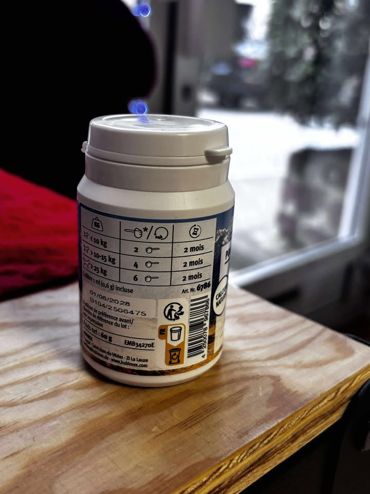 Contrairement aux autres compléments alimentaires, cette poudre est non seulement savoureuse, mais elle offre aussi des bienfaits uniques grâce à sa teneur élevée en calcium et vitamines. C’est l’allié parfait pour des animaux heureux et en pleine santé.