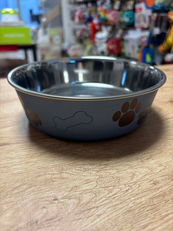 Cette gamelle se distingue par son look "fan d'animaux" avec une base noire mate décorée de motifs contrastés de pattes et d'os blancs. C'est le choix idéal pour les propriétaires qui recherchent un accessoire à la fois pratique et thématique pour leur compagnon.