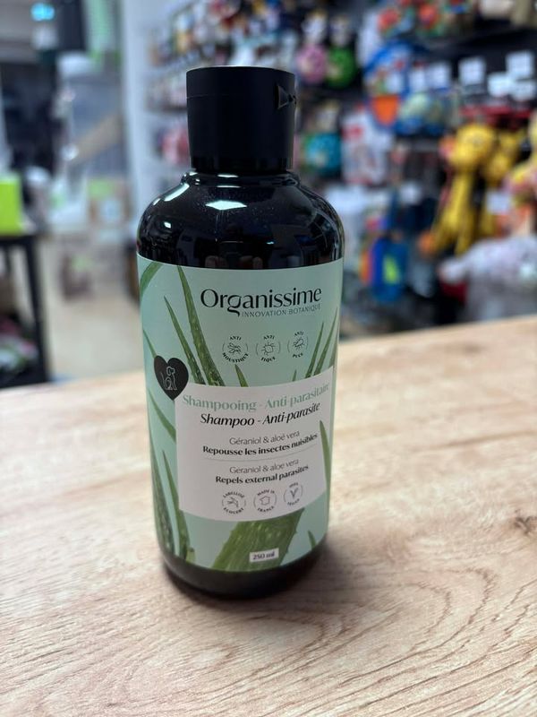 Le shampooing antiparasitaire Organissime pour chien est formulé à base de géraniol et d’aloé Véra bio. Il nettoie en douceur, hydrate le pelage, repousse les puces, tiques et autres insectes nuisibles.