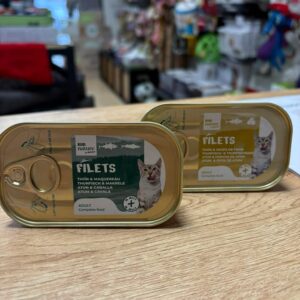 Filets de viande ou de poisson effilochés à la main, servis soit dans un bouillon naturel (pour l'hydratation), soit dans une gelée (pour la texture et la gourmandise) en format 85gr. Aliment complet pour chats qui contient des vitamines, minéraux et de la taurine essentiels à la santé quotidienne de votre chat. Thon et crevettes...